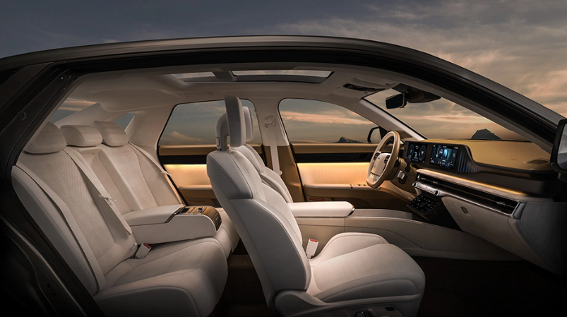그랜저 GN7은 이전 그랜저의 모습들을 모두 담고 있어 마치 그동안의 그랜저 총집합을 본 것 같은 느낌을 주며, 18인치부터 20인치까지 다양한 크기의 휠을 선택할 수 있어 완성도 높은 디자인을 보여줍니다. 측면에는 넥쏘, 아이오닉 등 친환경 차량에서 적용되었던 플러시 도어 핸들과 프레임리스 도어가 적용되어 우아한 느낌을 더해줍니다.