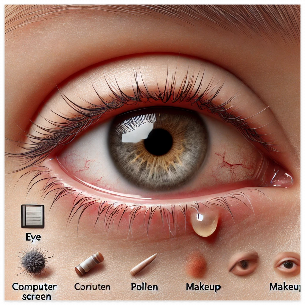 주요 원인으로는 건조한 눈, 알레르기, 감염, 눈꺼풀염, 콘택트 렌즈, 눈부상, 각막염, 결막염, 눈물샘 이상, 피로 등이 있습니다.