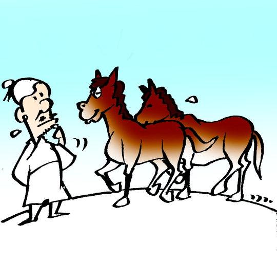 어느 날 노인의 수말이 국경을 넘어 가버려서 이웃들은 노인을 위로했지만, 노인은 "이 일이 복이 될지 누가 아나요"라며 말했습니다. 몇 달 뒤 수말은 암말과 망아지를 데리고 돌아왔습니다.